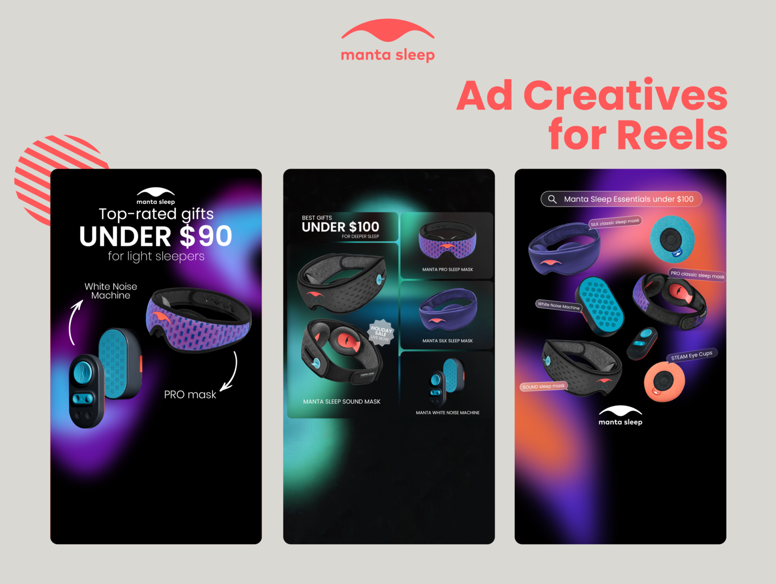 Manta Sleep needed a set of fresh, clean, visually consistent marketing assets that matched their premium brand identity. Their existing visuals lacked the element of relating to their ideal customer and understanding their pain points. And they required graphics that could clearly communicate the ability of their product to solve their sleep problems.